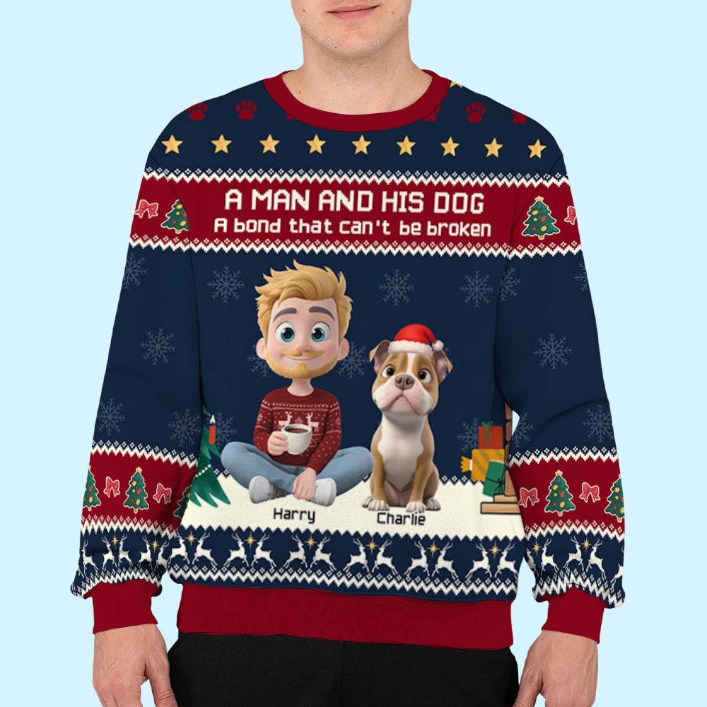 A Man And His Dog Christmas - Personalized Custom All-Over-Print Sweatshirt