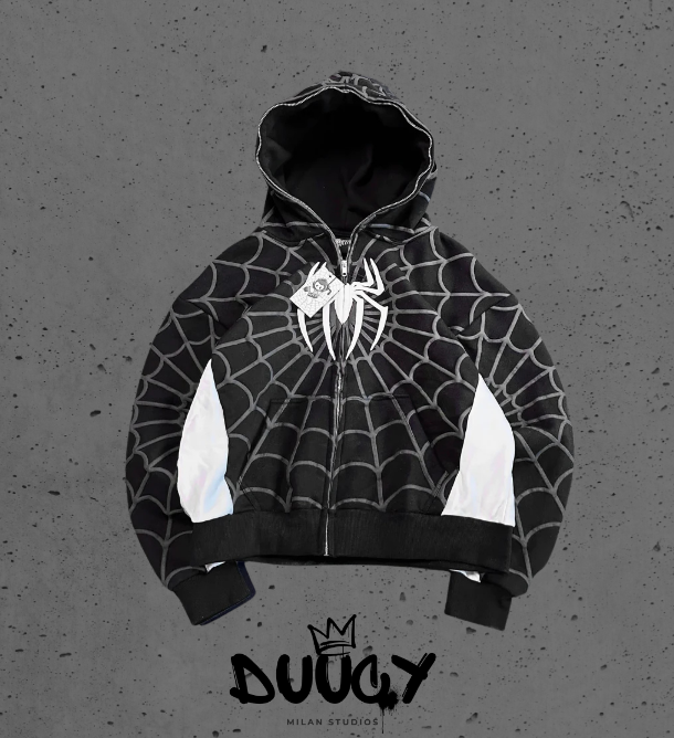 It features a full zip closure that goes over the face, a double-layered hood for extra insulation, and a unique all-over puff print with intricately embroidered logo eyes. Additionally, it boasts exclusive cut-and-sewn two-tone paneling that gives it a distinct, high-quality finish.