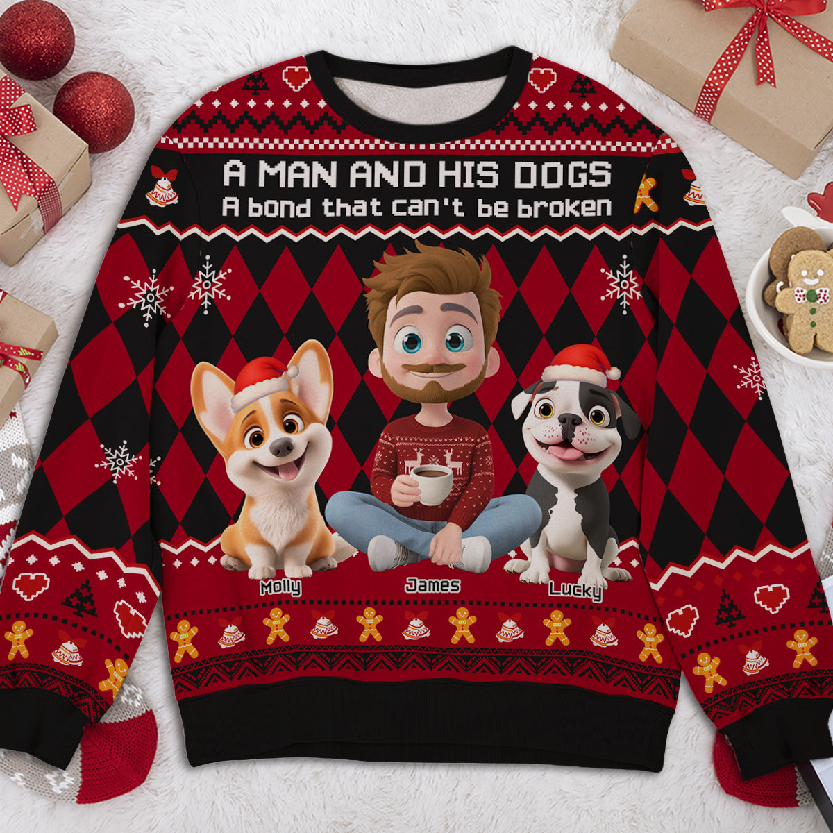 Whether you're finding a unique gift for dog lovers or want to break your Holiday season with a trendy outfit, this cute all-over-print sweatshirt is an ideal choice.
