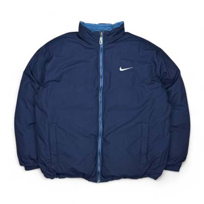 Nike Vintage 90s Reversible Rare Down Spellout Pufferjacke Blau Navy
