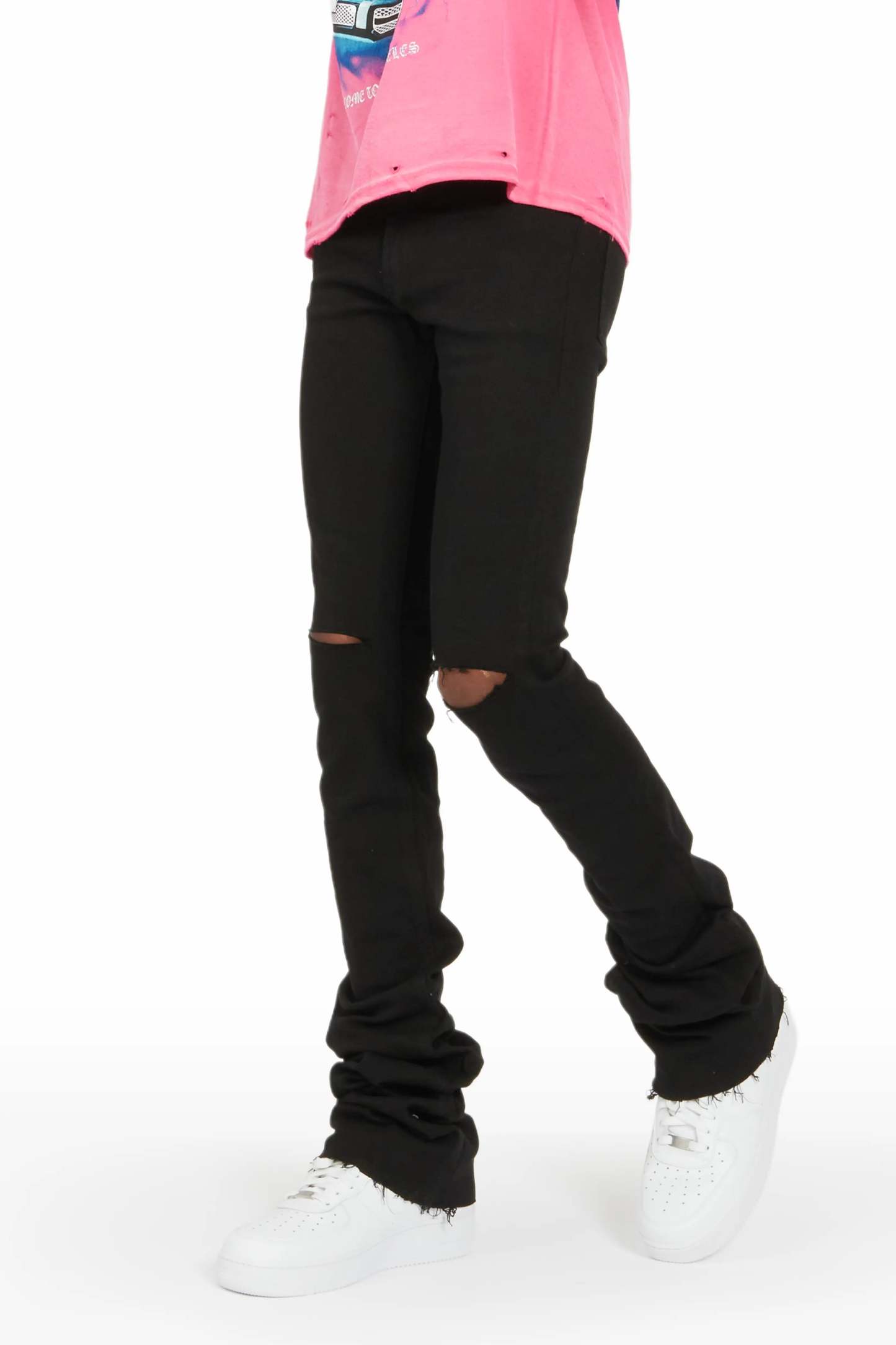 A classic streetwear-inspired super stacked denim jean for men in black. Designed with organic cotton for a must-cop everyday style.