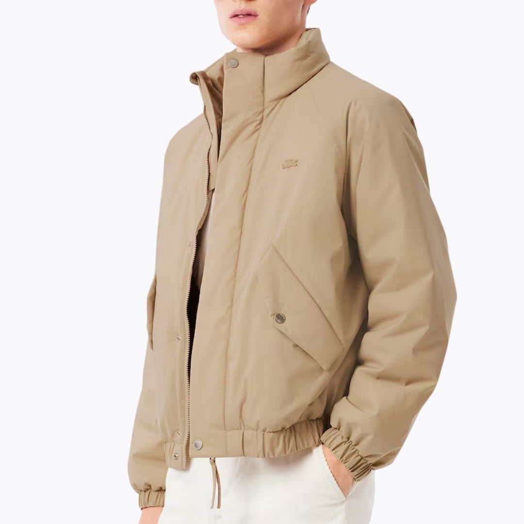 This Water-Repellent Jacket showcases an elegant silhouette crafted from plush fabric, enhanced with refined, high-end detailing. Made with a light and padded material, it features a high collar, preserving a clean and contemporary aesthetic.
