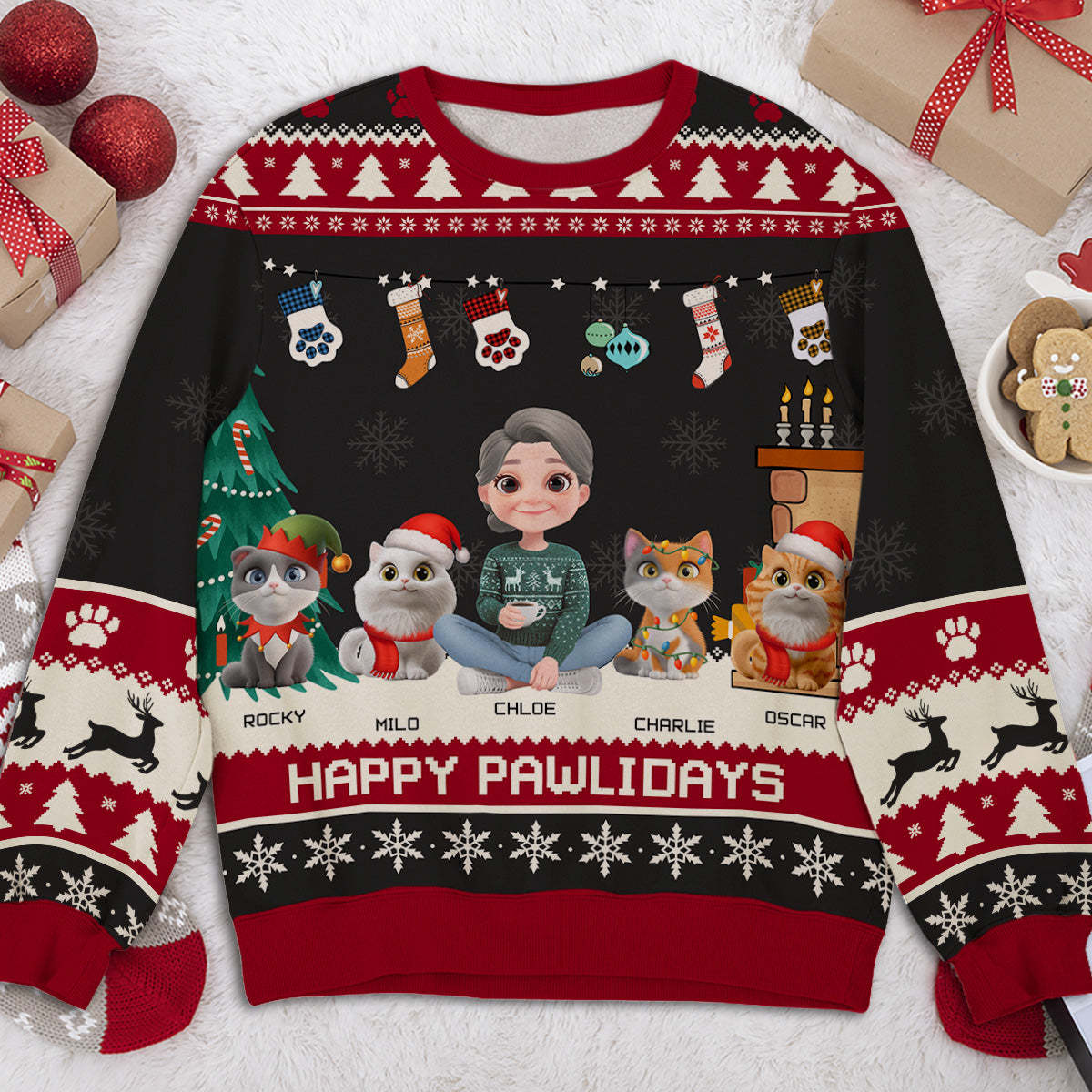 Snowy Pawlidays Cat Cartoon - Personalized Custom All-Over-Print Sweatshirt