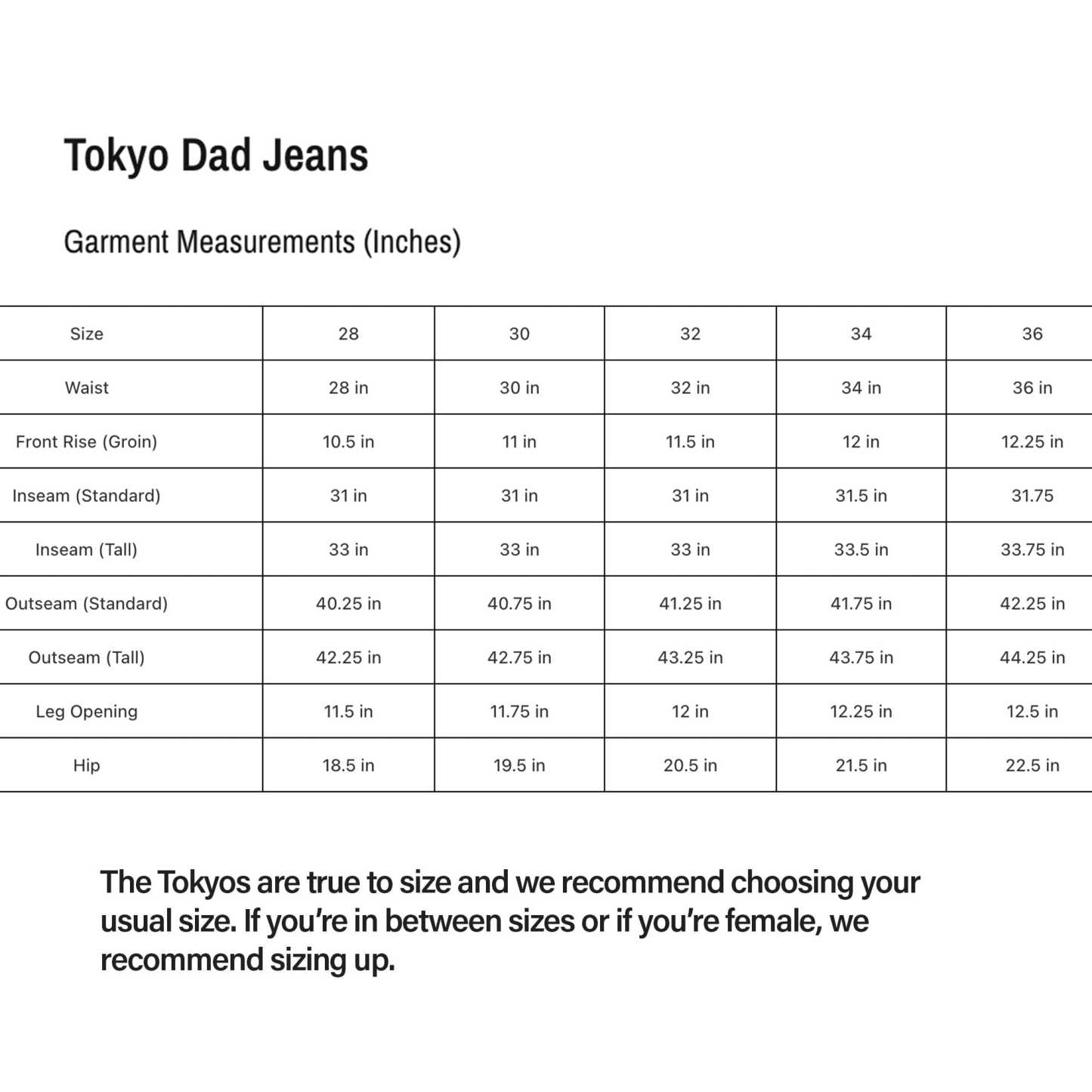 Inseam: 31 in (Size 28), 31 in (Size 30), 31 in (Size 32), 31.5 in (Size 34), 31.75 in (Size 36)